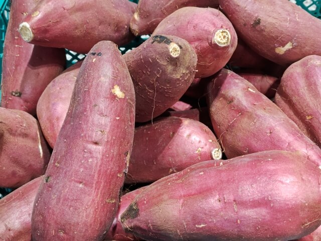 さつまいもの「紅はるか」は、しっとりとした食感と強い甘みが人気の品種です。収穫後に一定期間貯蔵することで甘みがさらに増し、まるでスイーツのような味わいになります。ビタミンCや食物繊維、カリウムを多く含み、健康にも嬉しい食材です。焼きいもはもちろん、スイートポテトやお菓子作りにもおすすめです。秋から冬にかけて最もおいしい季節を迎えます。